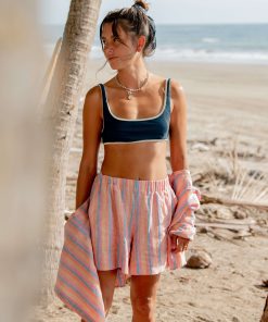 Faherty Women’s Laguna Linen Bayview Short – Deep Jungle Lucy Stripe | Deep Jungle Lucy Stripe