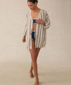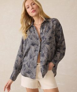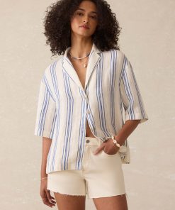 Faherty Women’s Laguna Linen Relaxed Shirt – Deep Jungle Lucy Stripe | Deep Jungle Lucy Stripe