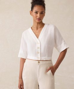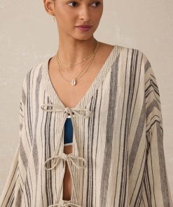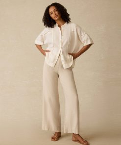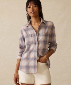 Faherty Women’s Laguna Linen Relaxed Shirt – Golden Kiwi Lucy Stripe | Golden Kiwi Lucy Stripe