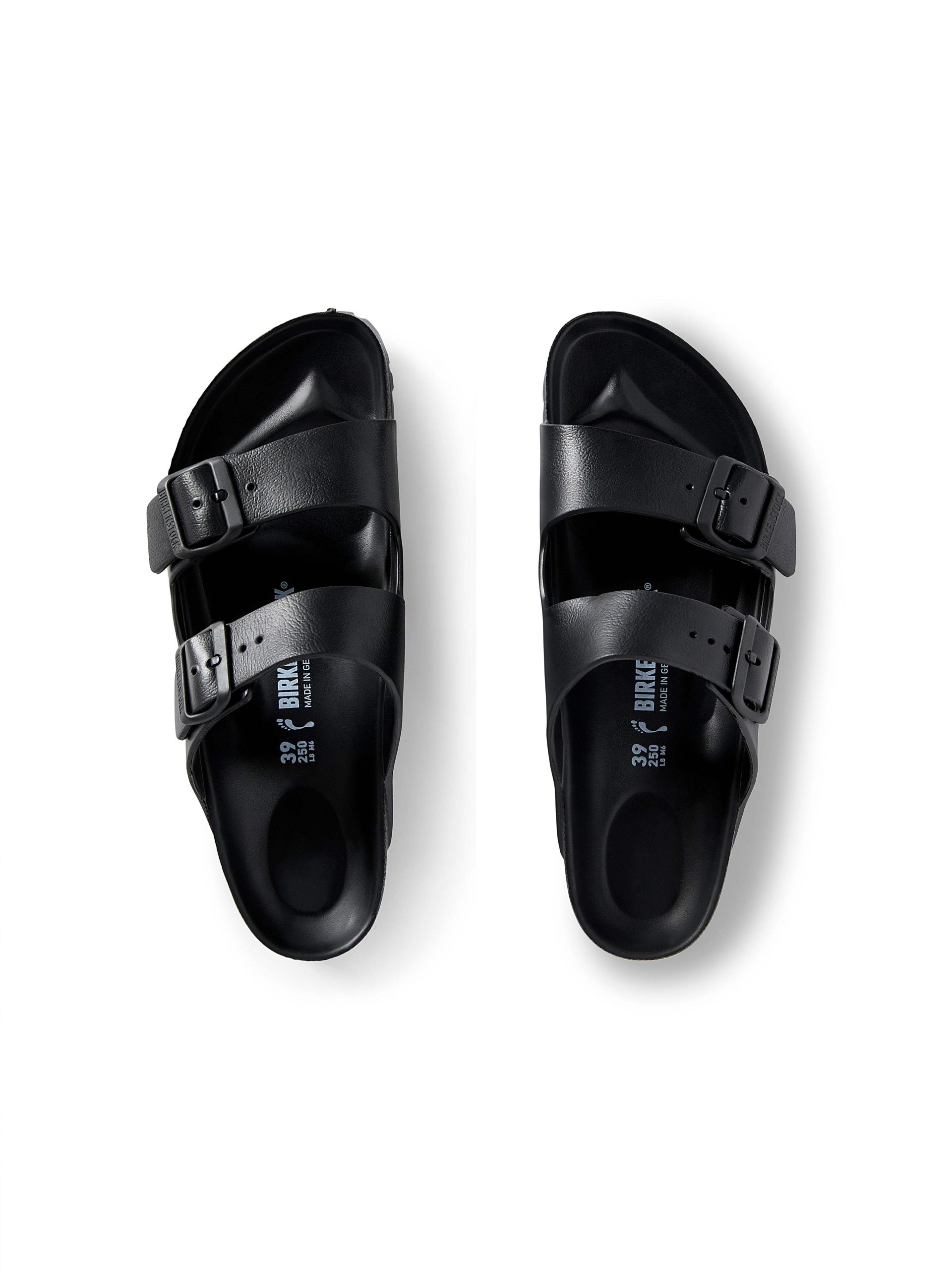 - Detail: Adjustable two-strap design from BIRKENSTOCK – the Arizona. Modeled on the cork original, this sandal is made from ultra lightweight EVA. Waterproof. Made in Germany.