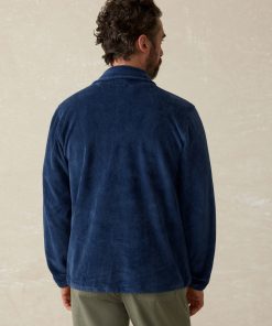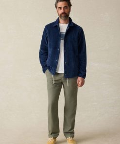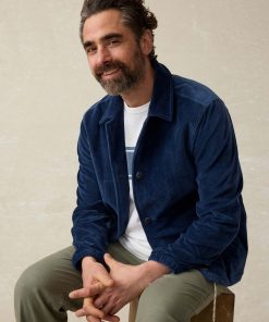 We updated our classic coach’s jacket for the transitional weather with a corduroy exterior and cotton flannel lining. It’s that toasty feeling walking the beach at dusk during the off-season. The embroidered artwork at the front and back is classic Faherty DNA: Sun, waves, and surf.