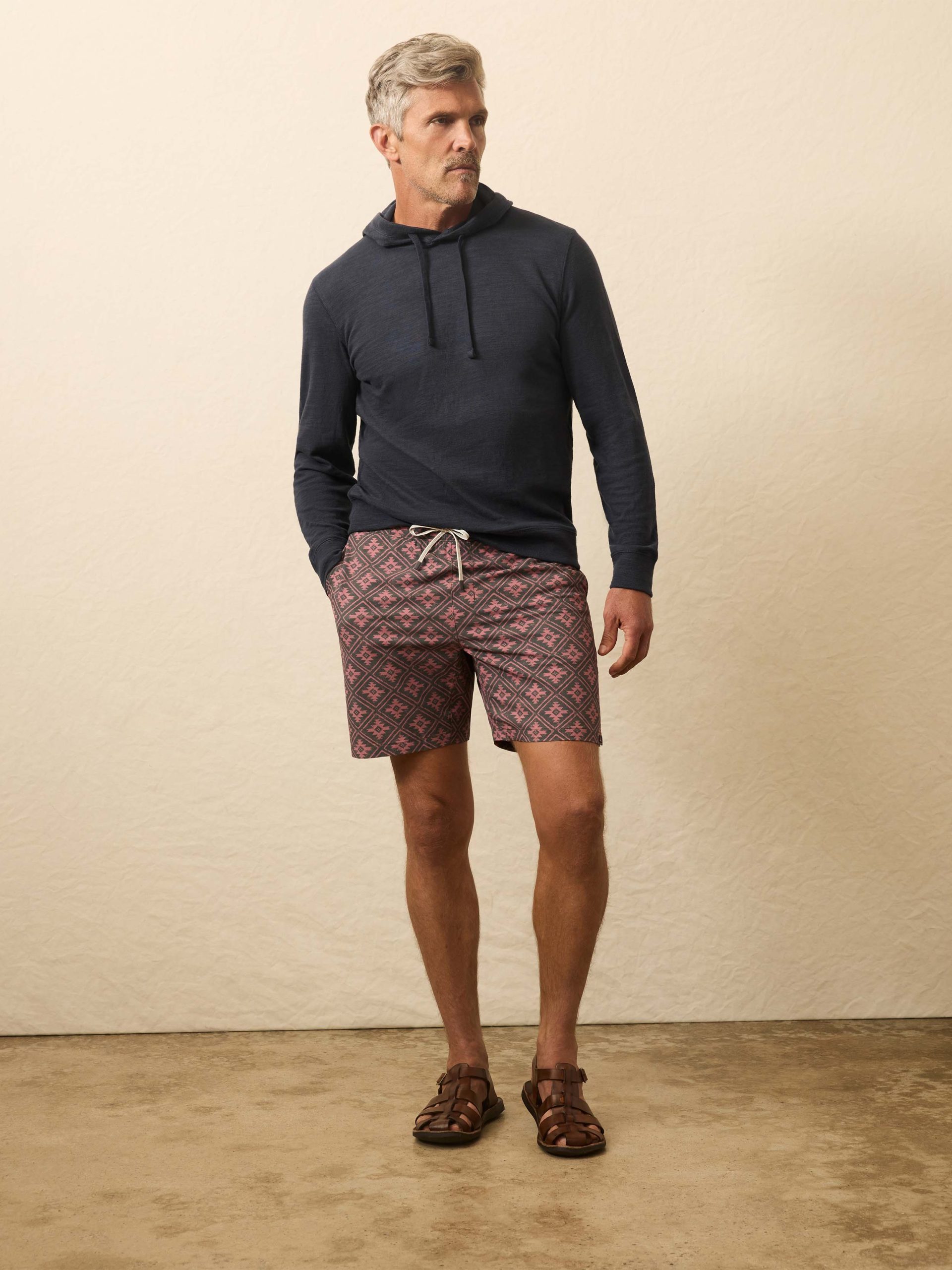 Native artist Doug Good Feather’s (Standing Rock Lakota and Dakota Nation) rugged motif embellishes our most technical short yet for those gym-to-beach days (and maybe even some lounging in between). Packed with utility, it’s got a breathable, compression liner for support during your most active moments and zippered accessory pockets to keep valuables close. The lightweight and quick-drying fabric has the perfect amount of stretch and offers UPF50+ so you can stay out and get after it. If you’re looking for a true activewear short with an iconic Faherty beach vibe, this is it.