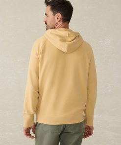 - Detail: Popover hoodie. Double layer hood with drawcord. Raglan sleeves. Kangaroo patch pocket with hidden zipper pocket. Knit rib at cuffs and hem. Sun & Waves embroidery at wearer’s left cuff. Overlap seams inspired by vintage athletic wear. Woven signature “High Standard Fleece” main label.