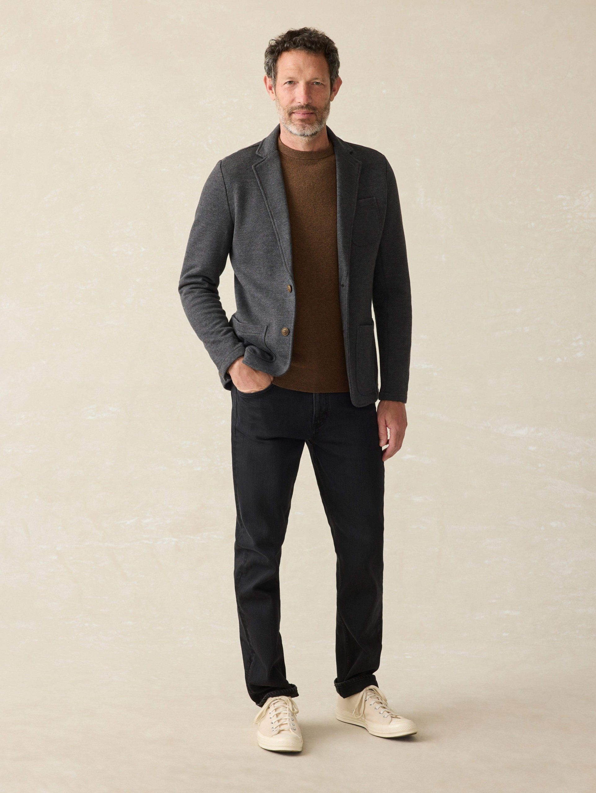 Our definitive sport coat leads with big-time comfort but is finished with top-shelf craftsmanship. The ultimate travel companion, it’s easy to care for, making it the perfect piece to throw into your carry-on or wear right off the plane and into the boardroom. Elevated yet unstructured, the signature loopback knit fabric is ridiculously soft, and stretchy, while still retaining its shape. Meet the blazer especially made for guys who don’t wear blazers.