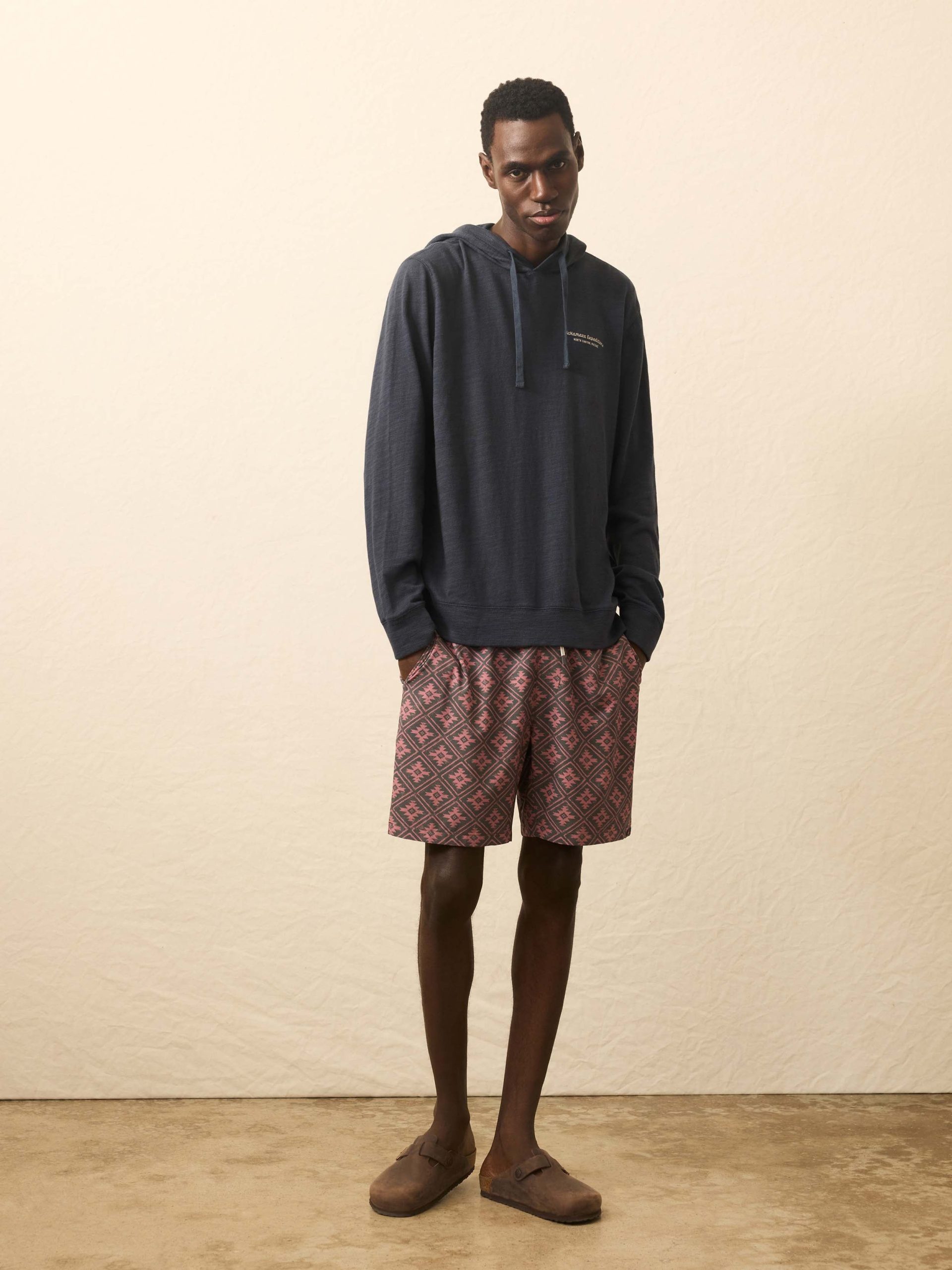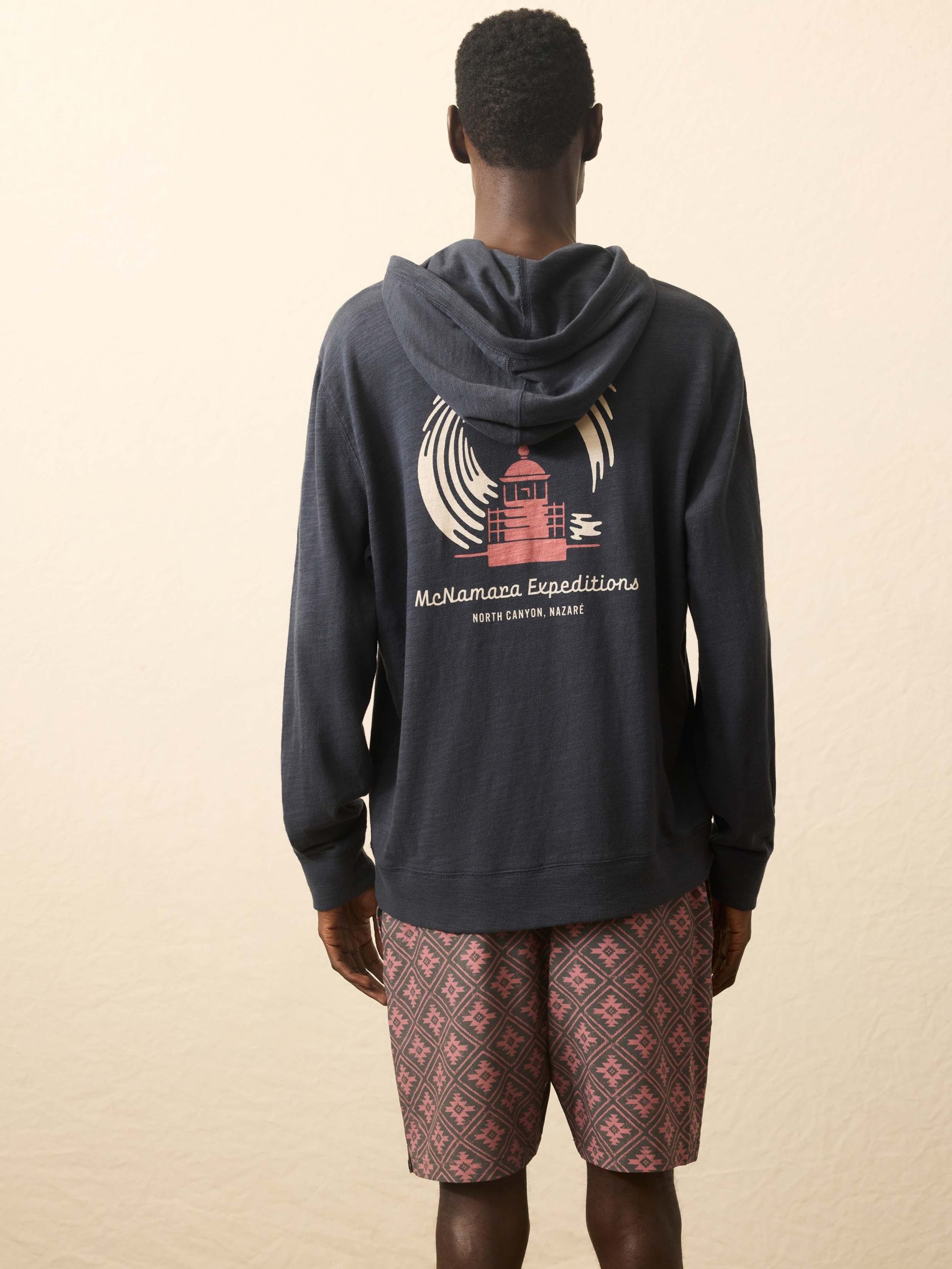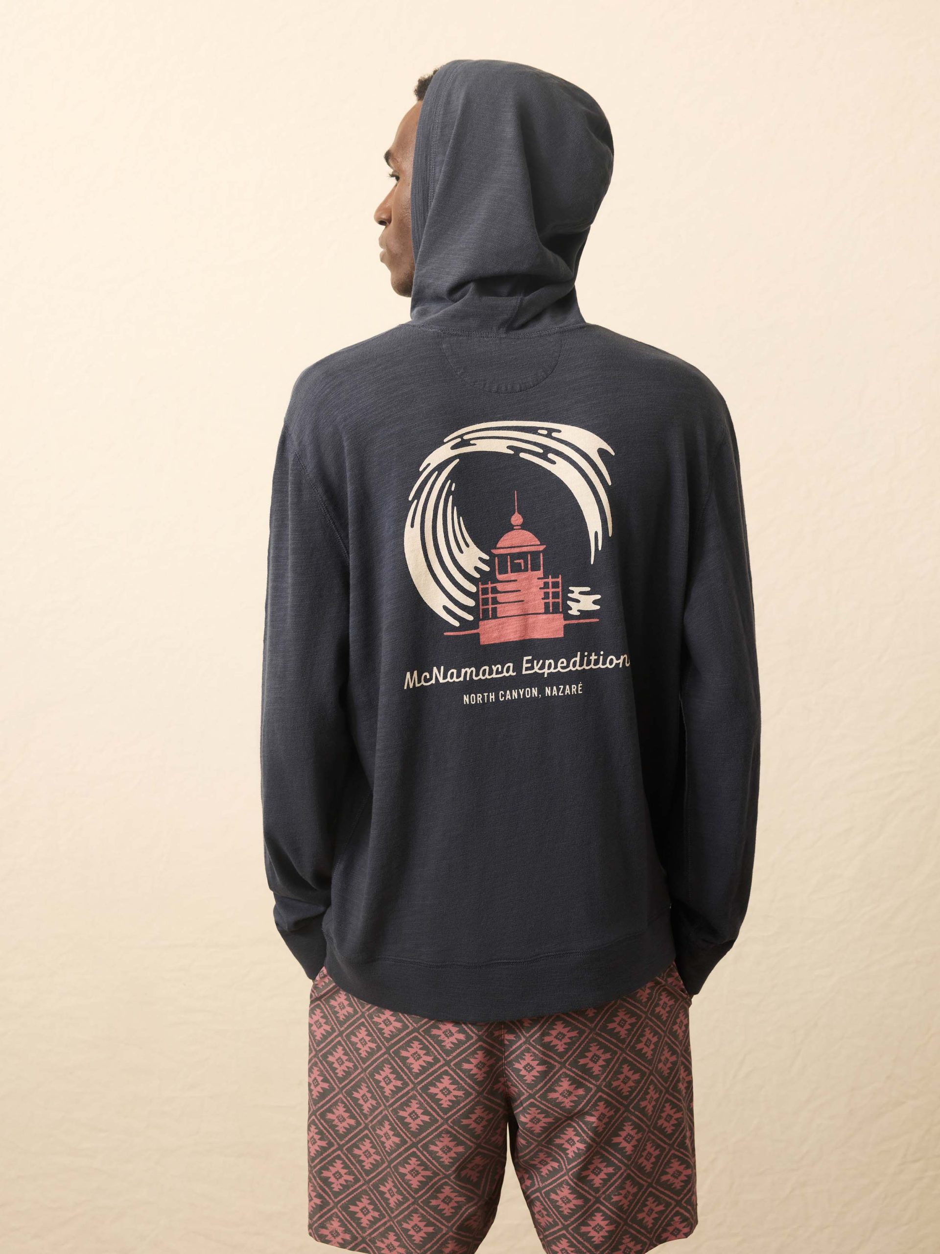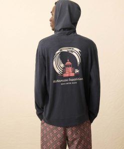 - Detail: Popover style. Hood with cotton drawcord. Long sleeves with fitted rib cuffs. Knit rib hem. Woven Sun & Waves label at wearer’s left hem.