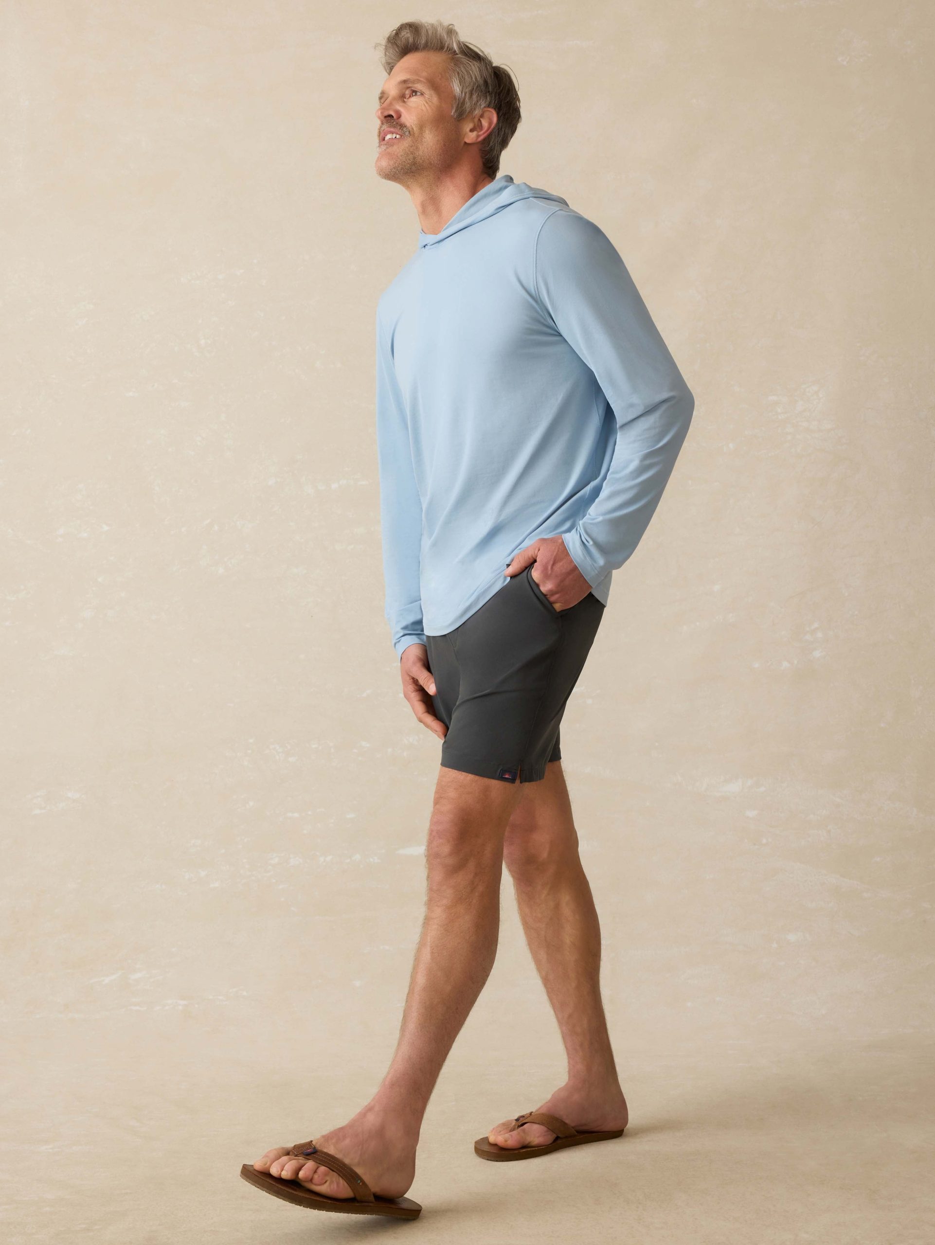 Introducing our most technical swim trunk yet for those gym-to beach days (and maybe even some lounging in between). Packed with utility, it’s got a breathable, compression liner for support during your most active moments and zippered accessory pockets to keep valuables close. The lightweight and quick-drying fabric has the perfect amount of stretch and offers UPF50+ so you can stay out and get after it. If you’re looking for a true activewear short with an iconic Faherty beach vibe, this is it.