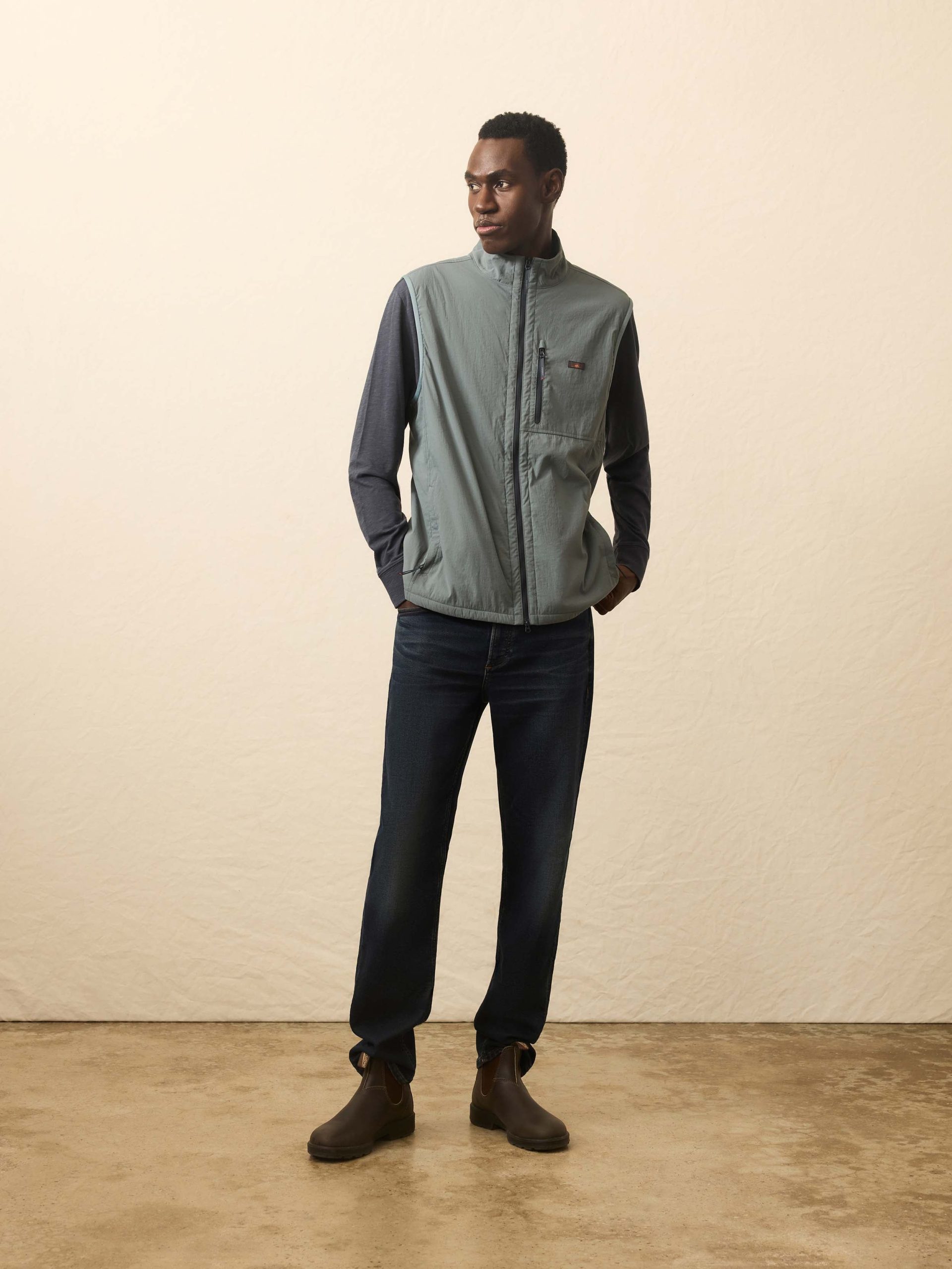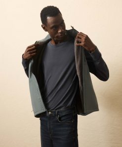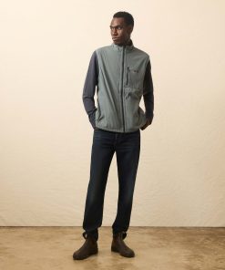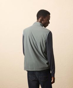 - Detail: 2-way center front zipper with woven tape puller. Binding at armholes. Zipper chest pocket with woven tape puller. Zipper closure lower pockets with tape puller hidden at forward side seams. Interior pocket. Locket loop at interior back neck. Woven Sun & Waves label at wearer’s left chest. Packs into interior pouch.