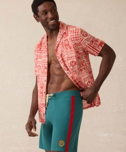- Detail: Top applied stripes at outseams. Reverse entry zipper pocket at wearer’s right backside. Classic boardshort drawcord tie closure. Gusset fly with both velcro closure. Compression knit liner with media pocket on wearer’s left side. “Sankofa Surf Club” woven patch at wearer’s left hem. Faherty Brand woven label at center back of waistband.