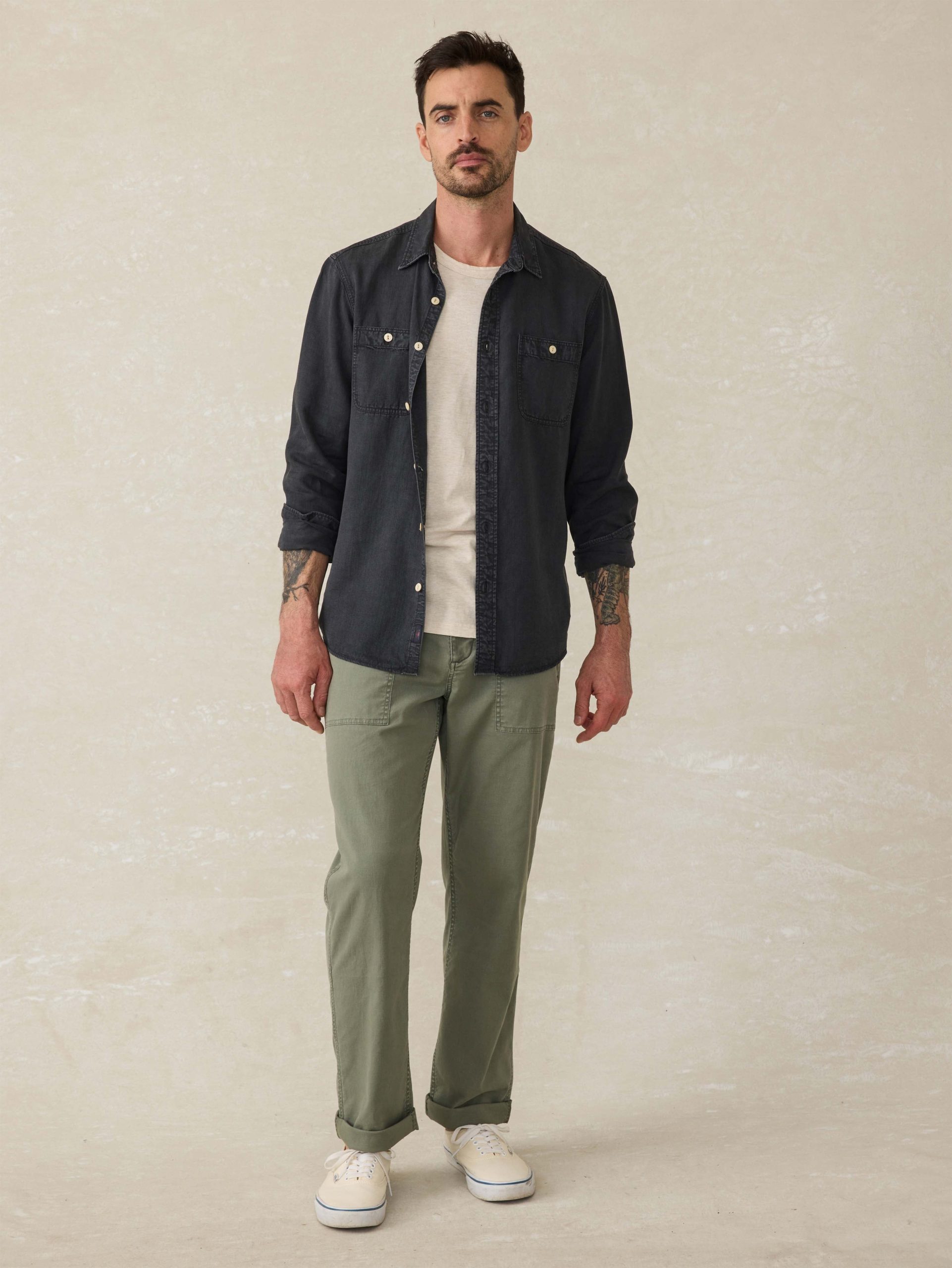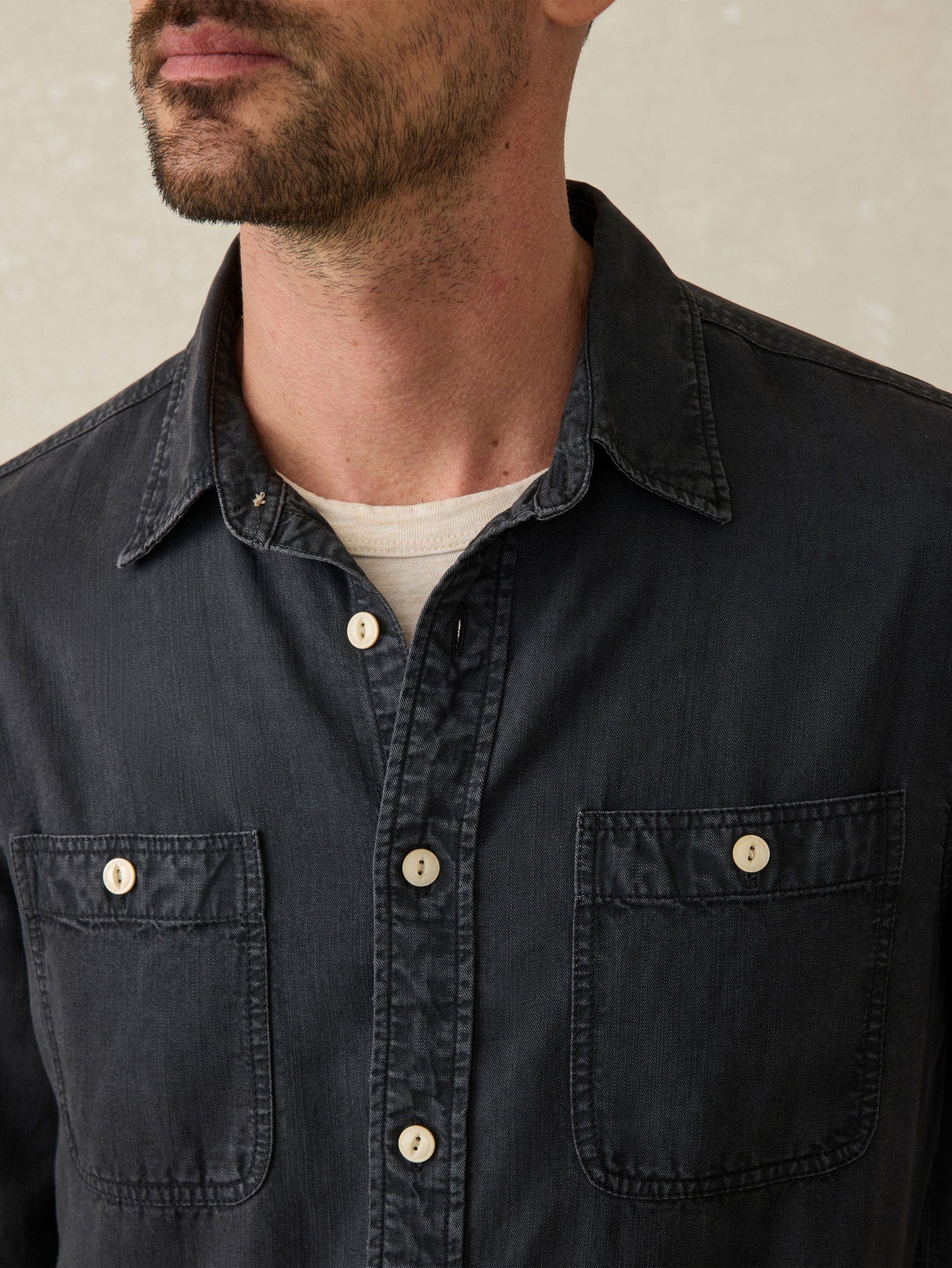 Faherty Men’s Tried & True Chambray Workshirt – Durango Black | Durango Black