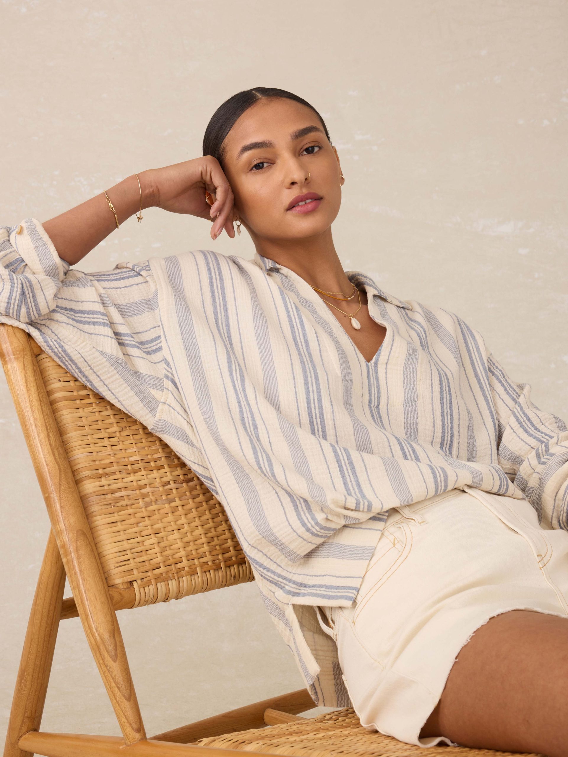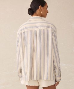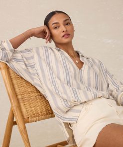 Faherty Women’s Dune Cotton Gauze Sail Away Top – Aqua Sea Stripe | Aqua Sea Stripe