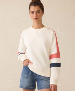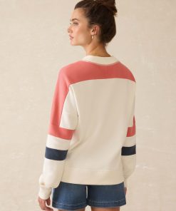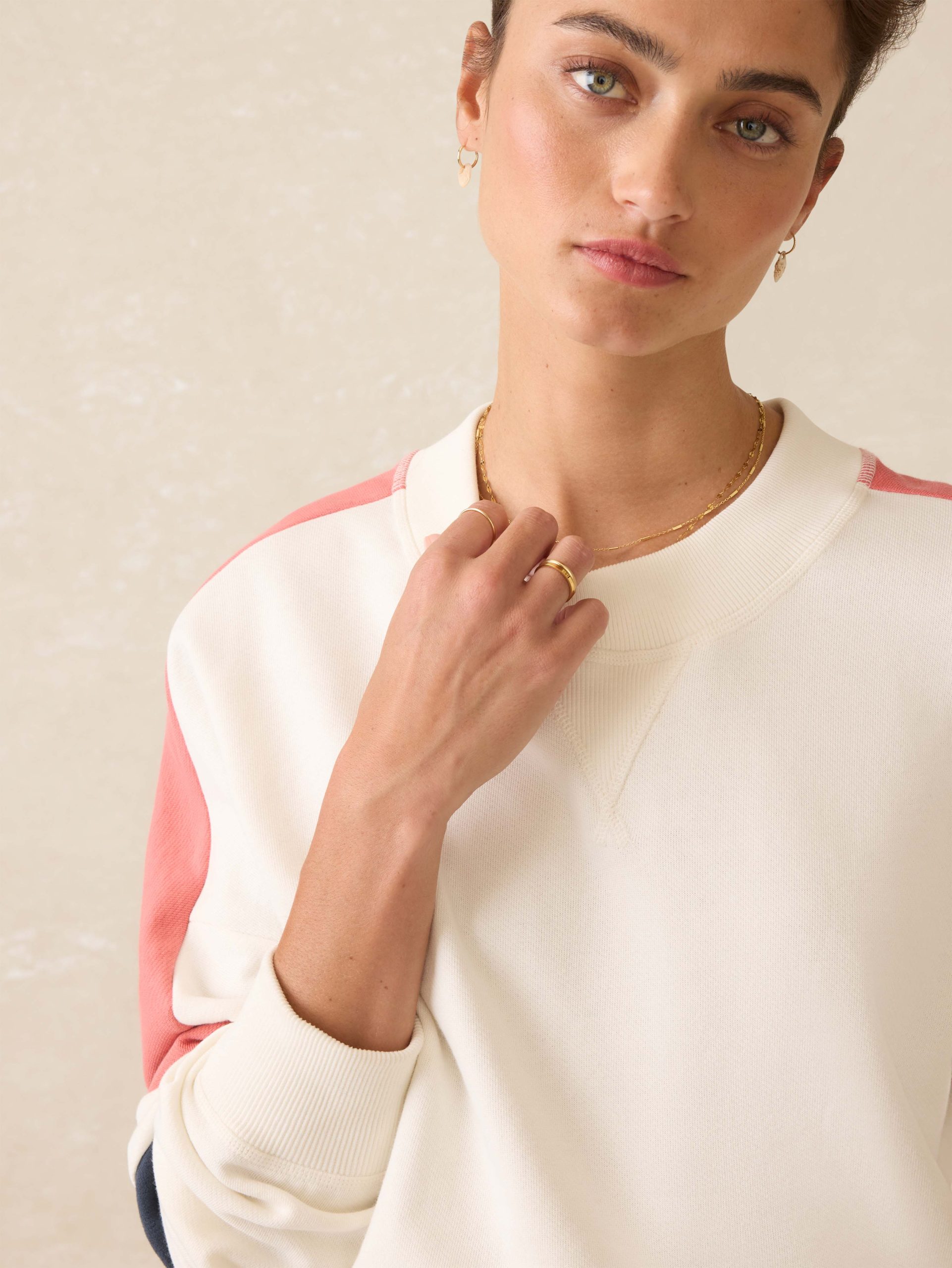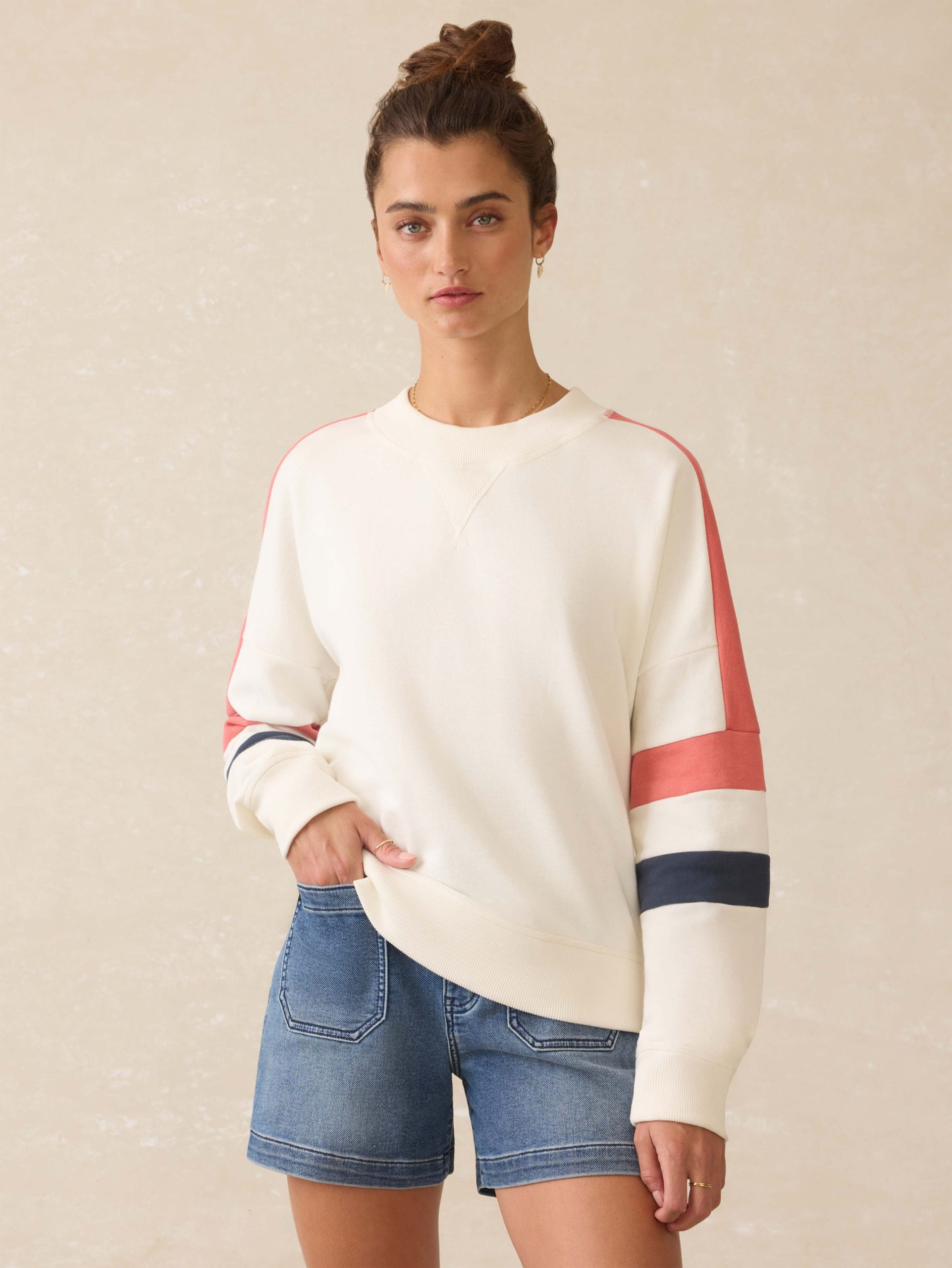 - Detail: Crewneck with raglan sleeve and piecing detailing. Rib trim at neckband, sleeve cuffs, and bottom hem.