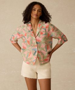 Vacation state of mind, bottled up in a shirt. This linen camp shirt brings the island vibes with a vibrant, lush tropical print and an easy, relaxed fit. Lightweight, breathable, and effortlessly cool, it’s your go-to for beach days, backyard drinks, or anytime you want to feel a little closer to the equator.