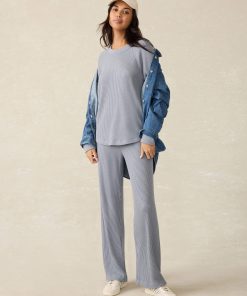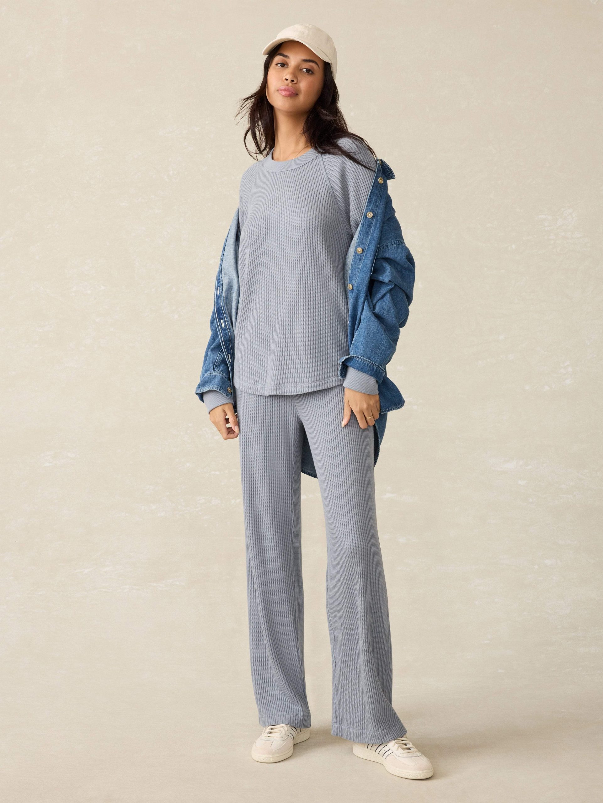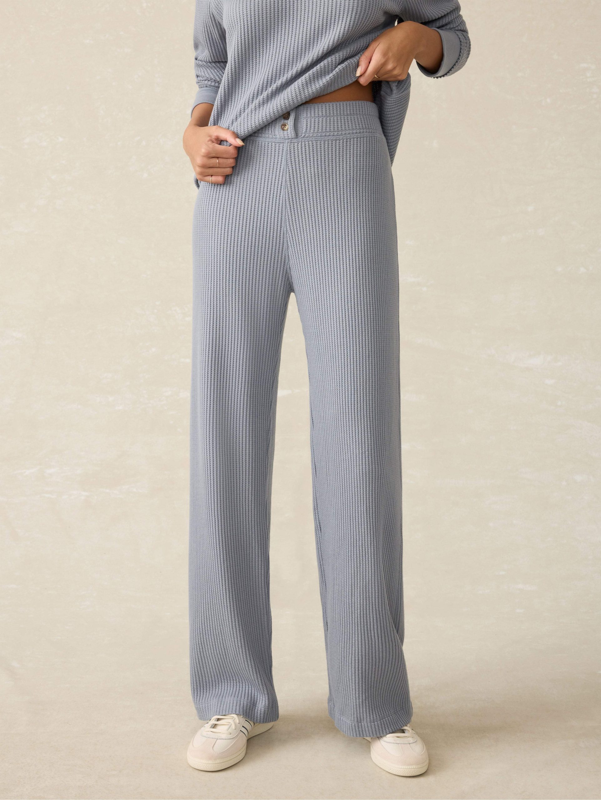 As the temps dip, it’s all about staying toasty. Crafted from a lightweight pima cotton and modal blend, this effortless pant will be your standby. The subtle waffle pattern adds softness and breathability and we love it styled with its matching crew for a monochromatic look.