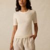 This fine-gauge ribbed tank is knit from a soft linen-cotton blend that breathes easy when the heat turns up. The close fit and refined texture give it a dressed-up edge—perfect on its own or layered under something breezy when the sun dips low.