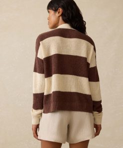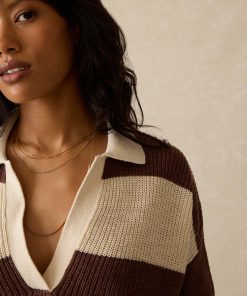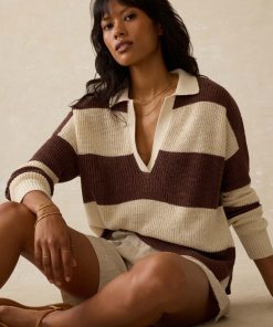 Warm enough for cool spring evenings but still light enough for sunny days, this striped polo is knit in an airy linen cotton blend that makes it the ideal layering piece. The textural, open stitch drapes beautifully with a slouchy, relaxed fit, making it our favorite no-fuss warm weather sweater.