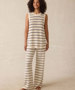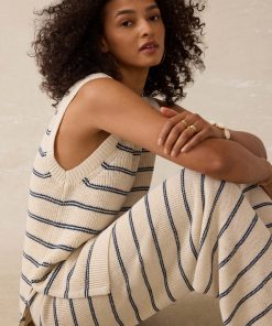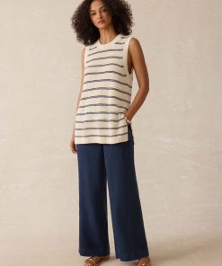 - Detail: Sleeveless tunic with rib trim details and side slits.
