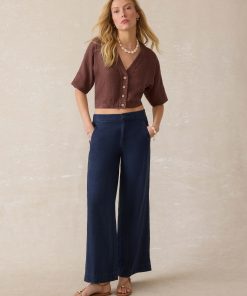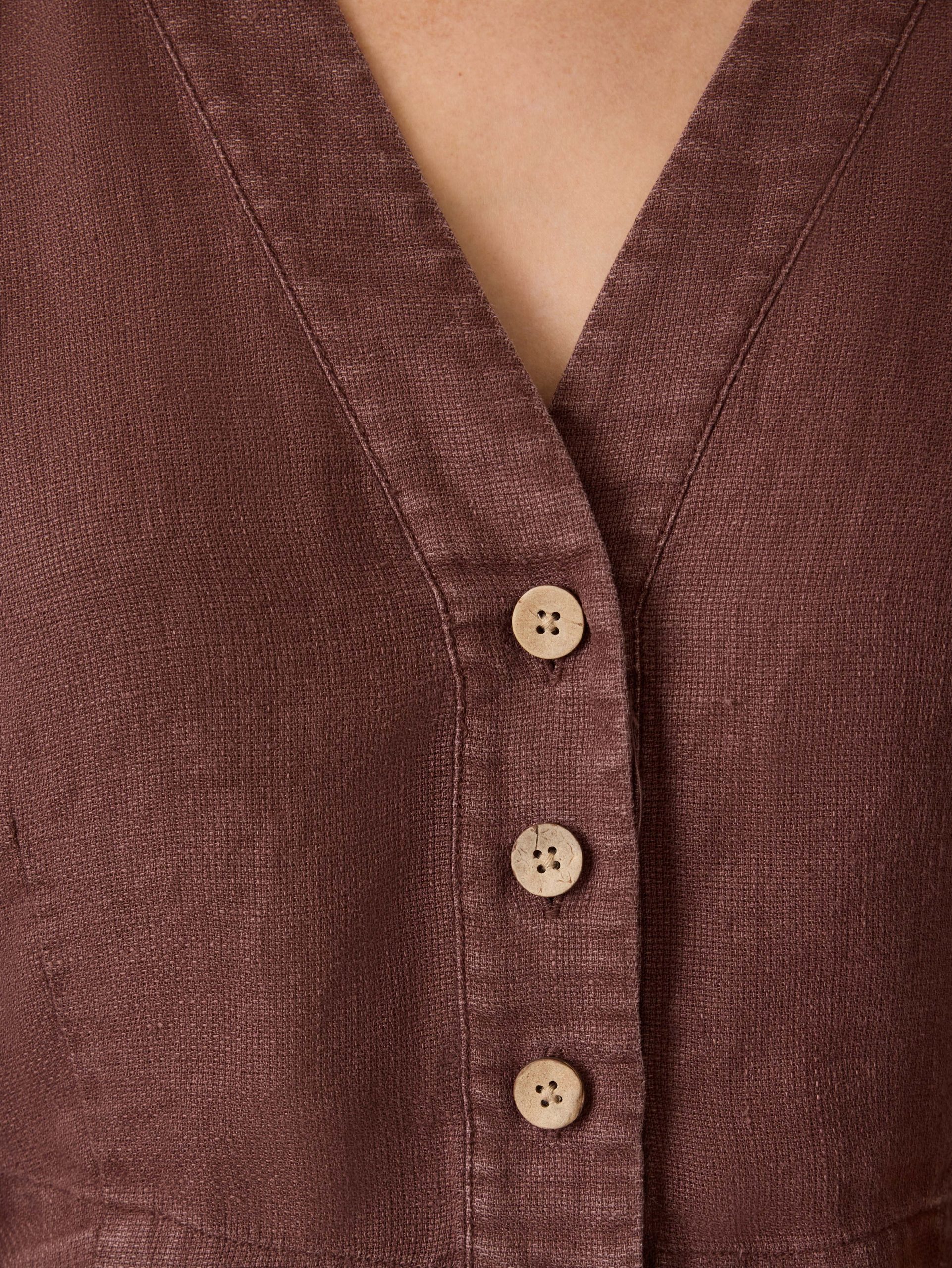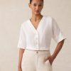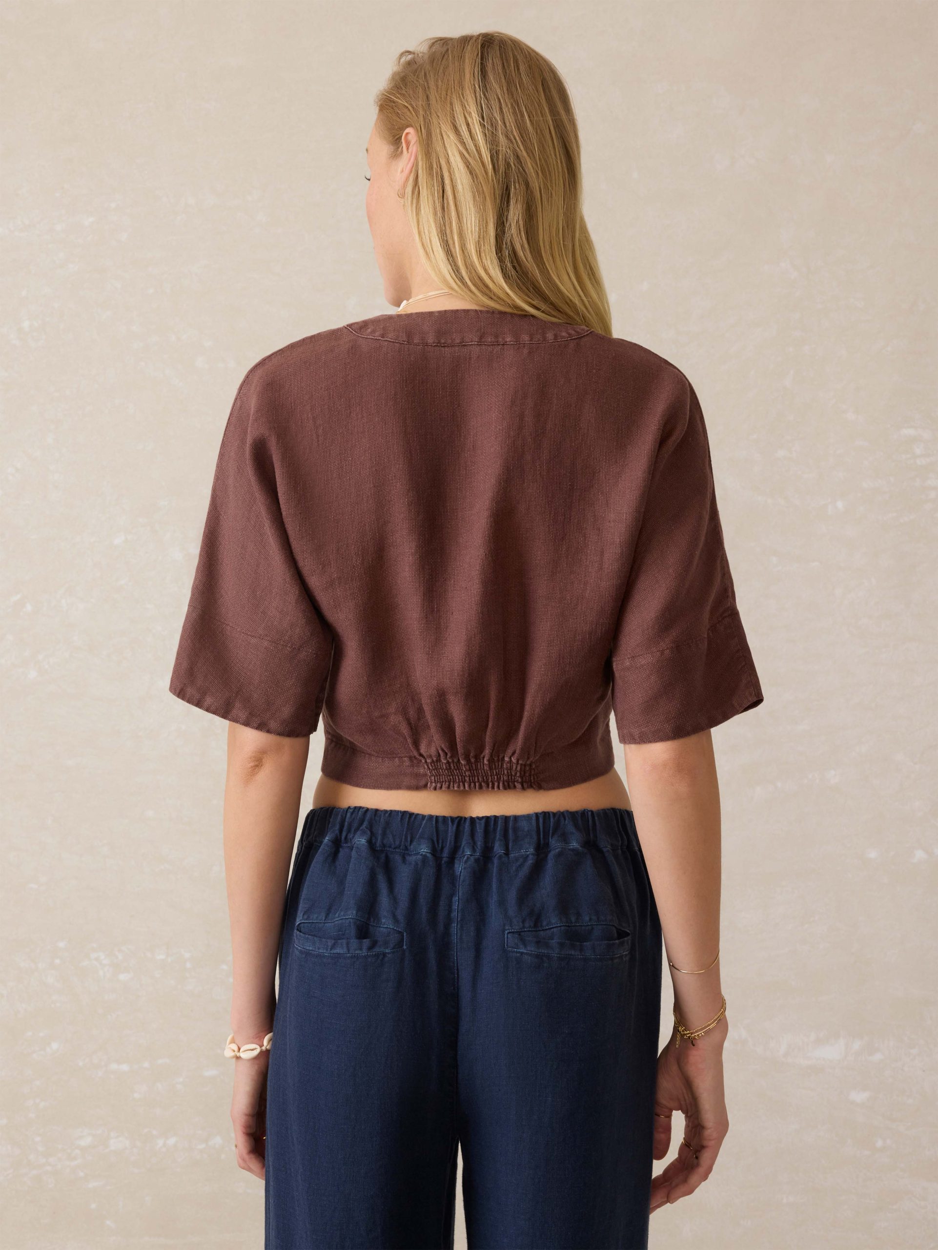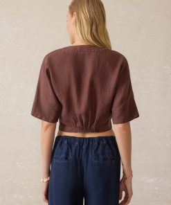 Crafted from airy linen, this short sleeve top features coco buttons for a hint of natural texture, while the encased elastic at the back keeps the silhouette effortlessly comfortable. Throw it on with shorts, skirts, or denim—it’s made for the season.