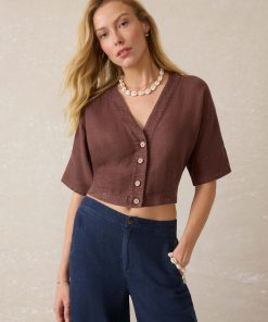 Crafted from airy linen, this short sleeve top features coco buttons for a hint of natural texture, while the encased elastic at the back keeps the silhouette effortlessly comfortable. Throw it on with shorts, skirts, or denim—it’s made for the season.
