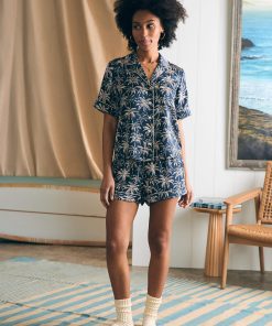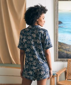 - Detail: Short sleeve top with shell button front closure. Pull-on shorts with elastic waistband and side seam pockets. Piping detailing.