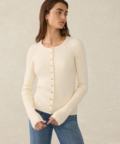 This fitted ribbed cardigan is where classic style meets laid-back comfort, crafted from a buttery-soft cotton-cashmere blend that’s anything but ordinary. The button-up front is perfect on its own or layering over your favorite flowy dress of the season.