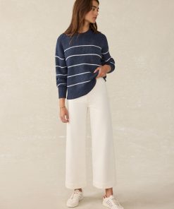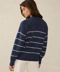 Faherty Women’s Sunwashed Cotton Fisherman Sweater – Water Mill Stripe | Water Mill Stripe