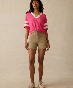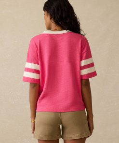 Faherty Women’s Sunwashed Slub Varsity Tee – Hot Pink Varsity | Hot Pink Varsity